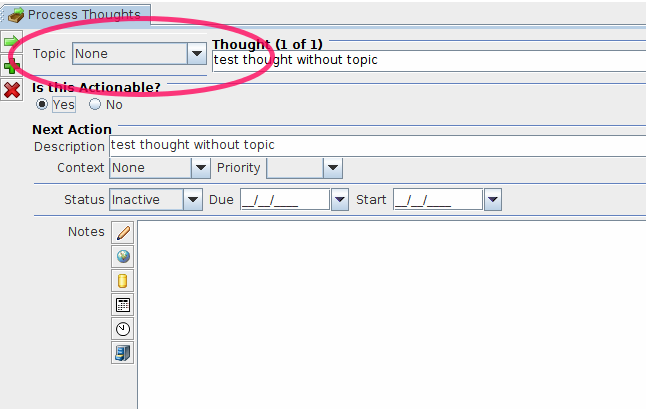 I noticed that when I process thoughts that often I didn't add initially the topic. That means that I have to go with the mouse pointer all the way up to the upper right corner, choose the topic and often come back to the left corner where all other controls are (see screen shot "present layout".