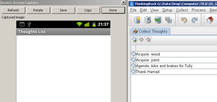 5. Return home (but not at computer) review thoughts on Android to see all thoughts (from 2 & 4). Such list of thoughts would be awesome:
